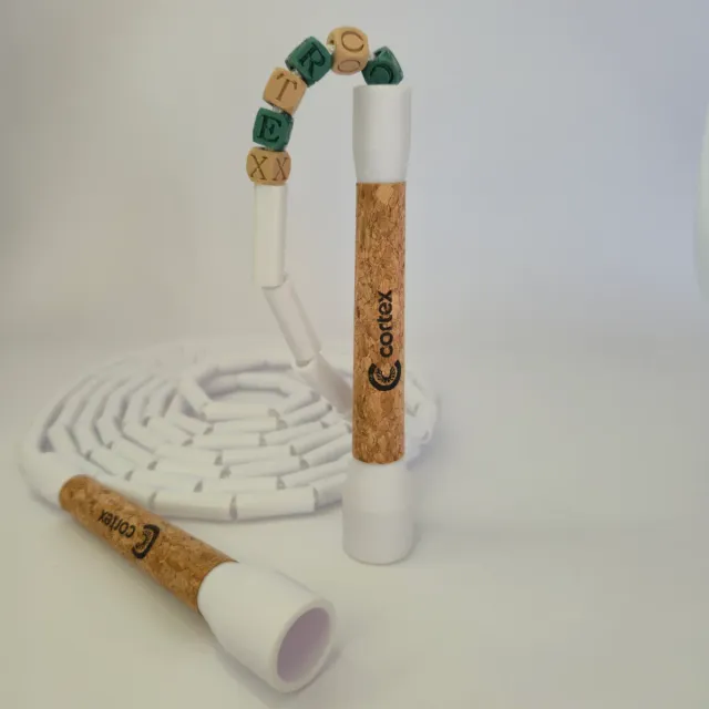 Corda de saltar segmentada com pegas em cortiça. - Pegas em cortiça cosidas à mão - Ajustável em comprimento - Perfeita para aprender truques