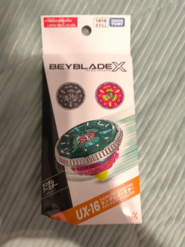 Beyblade X Random Booster UX-16, Clock Mirage. - Inclui um Beyblade X. - Modelo UX-16. - Tipo: Random Booster. - Nome do Beyblade: Clock Mirage.