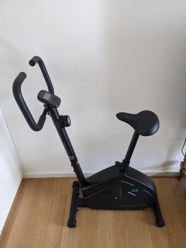 Detalhes do produtoBicicleta de exercício Domyos Essential, ideal para exercício em casa.