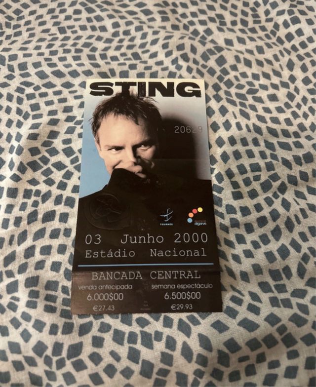 Bilhete de colecionador para o concerto de Sting. - Data: 03 Junho 2000 - Local: Estádio Nacional - Setor: Bancada Central