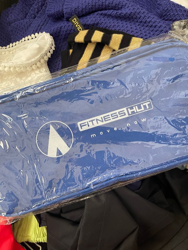 Detalhes do produtoSaco de desporto FitnessHut, azul, em excelente estado.