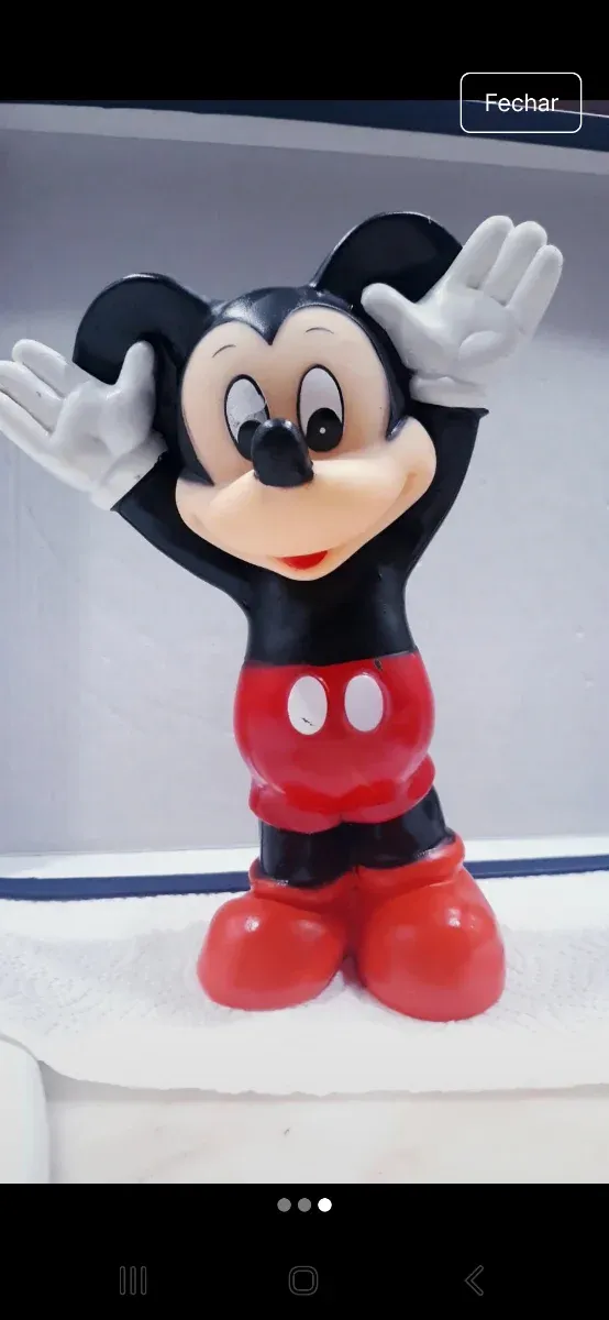 Boneco do Mickey Mouse, personagem clássico da Disney, feito em borracha e com som. - Material: Borracha - Detalhes: 20cm -Anos 80