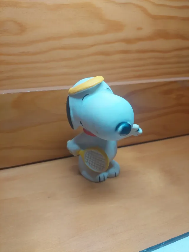 Detalhes do produtoBoneco vintage do Snoopy, o famoso cãozinho dos Peanuts, pronto para jogar tênis.
