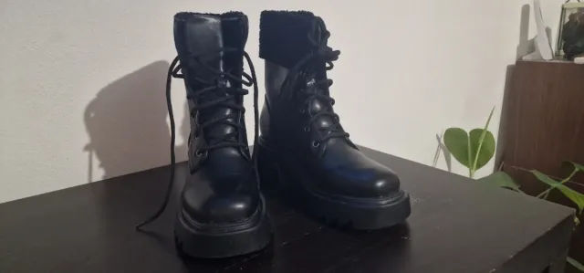 Botas pretas com atacadores e sola grossa