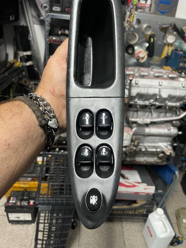 Conjunto de botões para o Lancia Lybra. - Controlo de vidros elétricos. - Botão de bloqueio de vidros. - Acabamento em cinza escuro.