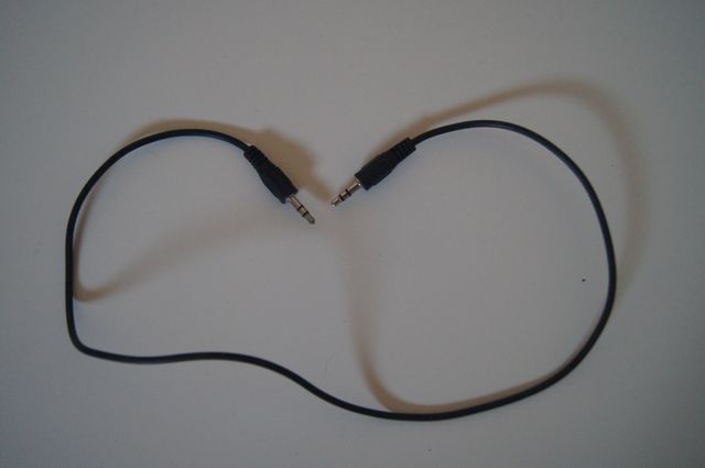Cabo de áudio com conectores P2 (3.5mm) em ambas as pontas. - Conectores Macho-Macho. - Cabo preto.