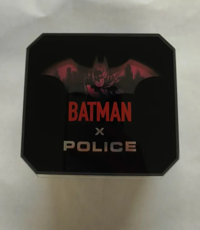 Detalhes do produtoCaixa de edição especial da colaboração entre Batman e Police. Apresenta um design temático com o icónico morcego e silhuetas urbanas.