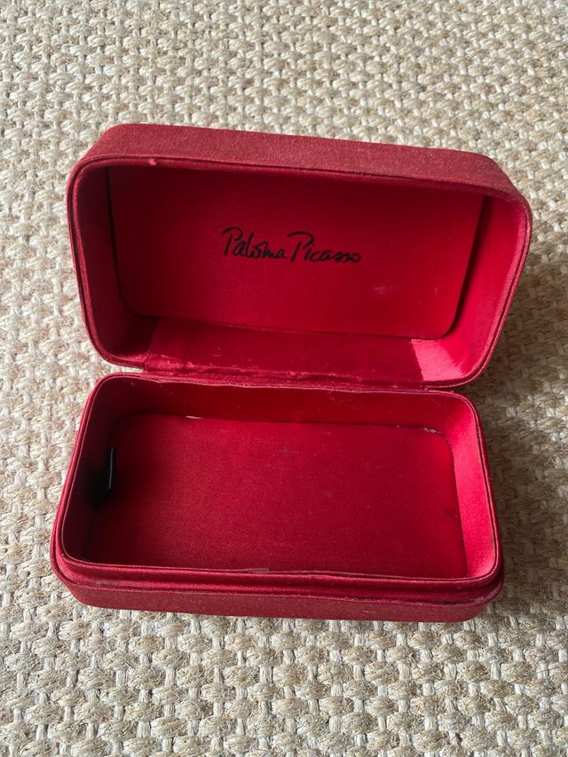 Caixa vazia da marca Paloma Picasso em cor vermelha. - Revestimento interno em cetim. - Design elegante.