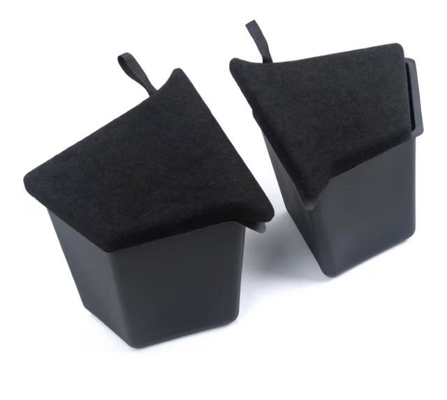 Detalhes do produtoConjunto de duas caixas de arrumação em preto, desenhadas para modelos Tesla de 2022 e 2023. Estas caixas são feitas de plástico resistente e possuem uma cobertura superior em tecido aveludado preto com uma alça para facilitar o manuseamento.