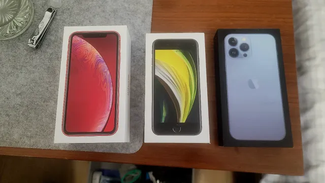 Conjunto de caixas originais para iPhones. - Caixa para iPhone 13 Pro Max. - Caixa para iPhone XR. - Caixa para iPhone SE (2020). 6€ as 3