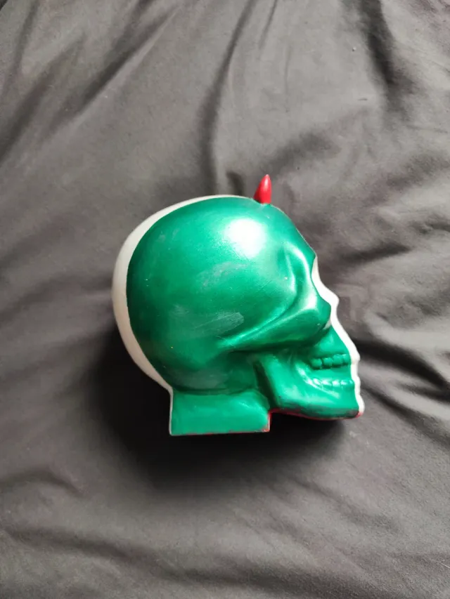 Detalhes do produtoFigura decorativa de caveira com chifres.