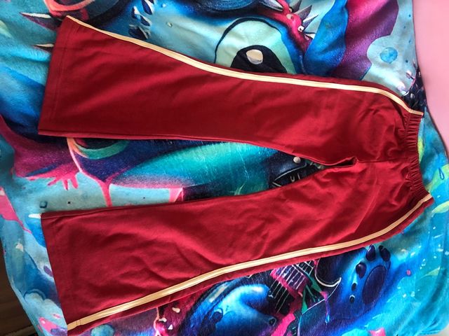 Calças vermelhas para menina, tamanho 8-10 anos. Novas, com detalhes em creme nas laterais. - Cor: Vermelho - Tamanho: 8-10 anos - Detalhe lateral em creme