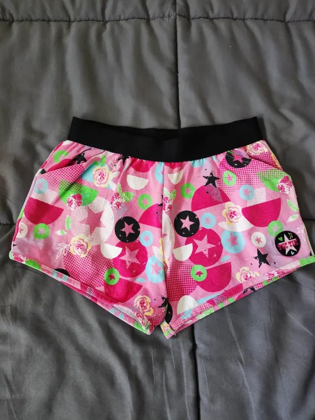 Calções da marca Tuc Tuc em tamanho 6 anos. - Estampado divertido com estrelas e flores. - Cintura elástica preta. - Bolsos laterais.