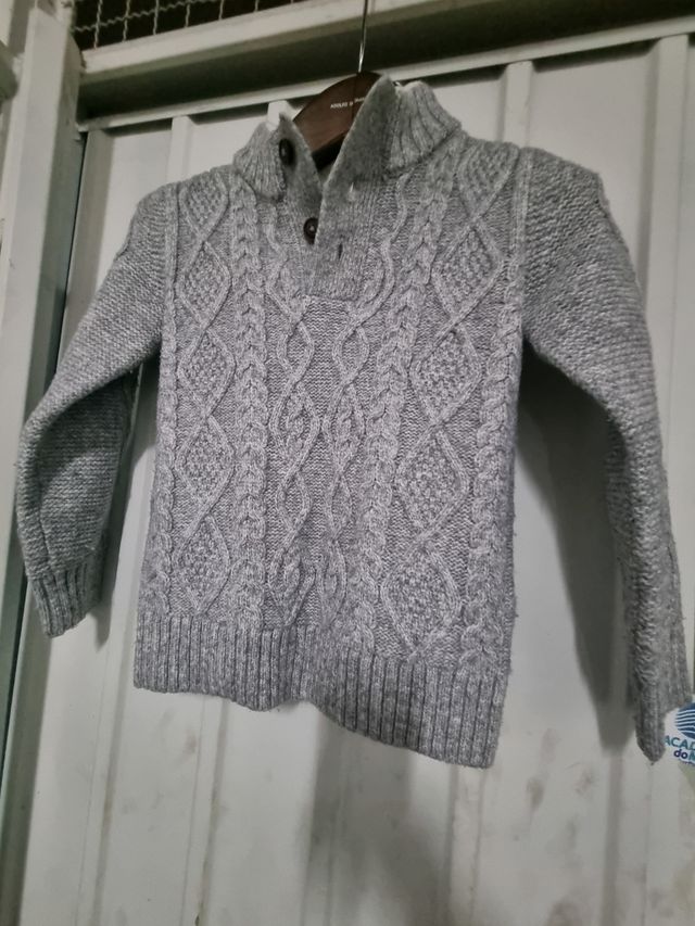 Camisola de malha , em tons de cinzento. Ideal para os dias mais frios. - Feita em malha macia e confortável. - Design de tranças na frente. - Botões na gola.