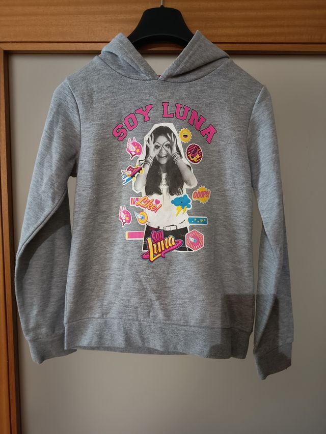 Detalhes do produtoCamisola cinzenta com capuz, inspirada na série Soy Luna. Apresenta um design divertido com a personagem principal e elementos gráficos.