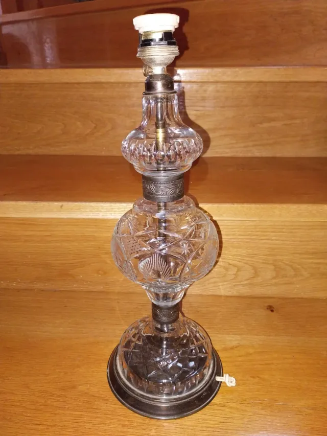 Vendo candeeiro antigo eletrificado, feito em vidro trabalhado e com detalhes em cobre. Está em bom estado e mede 40 cm`s de altura