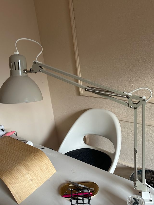 Candeeiros de mesa ajustável da Ikea, com um design moderno e funcional. - Estrutura em metal e plástico. - Cor bege.