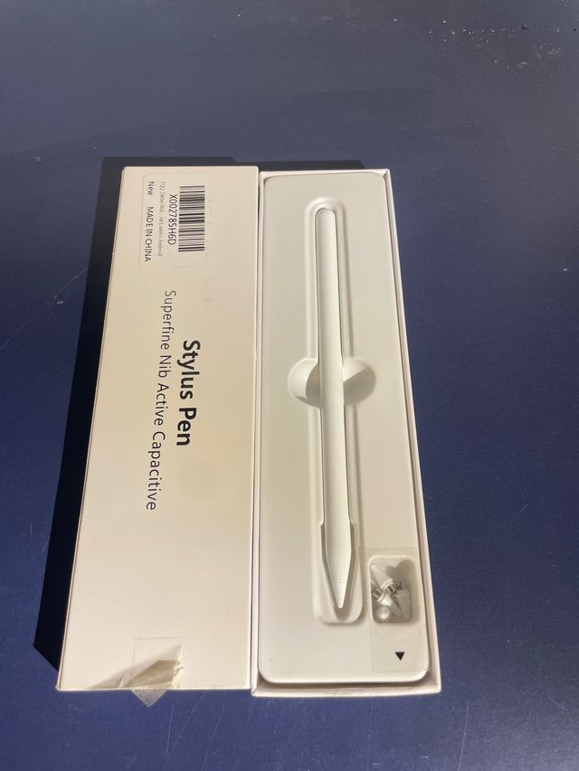 Caneta stylus branca com ponta superfina ativa. - Ponta superfina ativa. - Design elegante. - Inclui pontas de reposição.