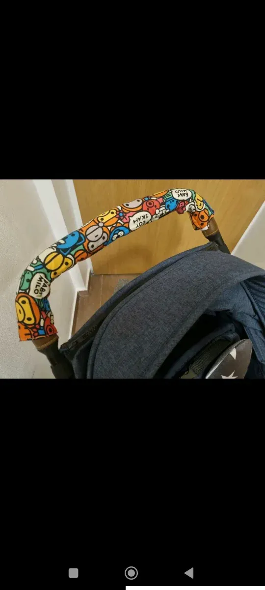 Capa protetora para o puxador do carrinho de bebé, com um divertido padrão. - Padrão colorido com figuras. - Tecido macio e confortável.