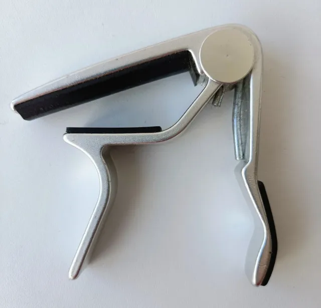 Detalhes do produtoCapotraste da marca Jim Dunlop, ideal para guitarra acústica. Feito em alumínio leve aircraft grade prateado com almofadas pretas para proteger o braço da guitarra.