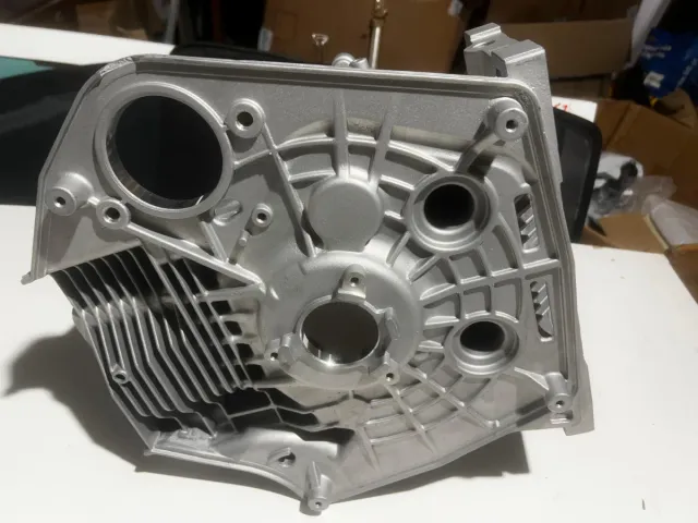 Detalhes do produtoCarcasa de aluminio para motor, con un diseño robusto y aletas de refrigeración.