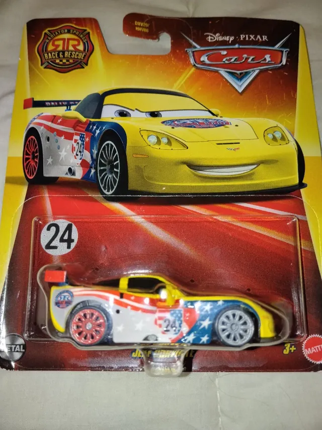 Detalhes do produtoMiniatura do personagem Jeff Gorvette do filme Carros da Disney Pixar.