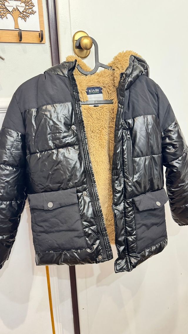 Casaco acolchoado com um forro interior macio e quente em pelo. - Fecho de correr frontal. - Bolsos com botões. - Capuz com acabamento em pelo.