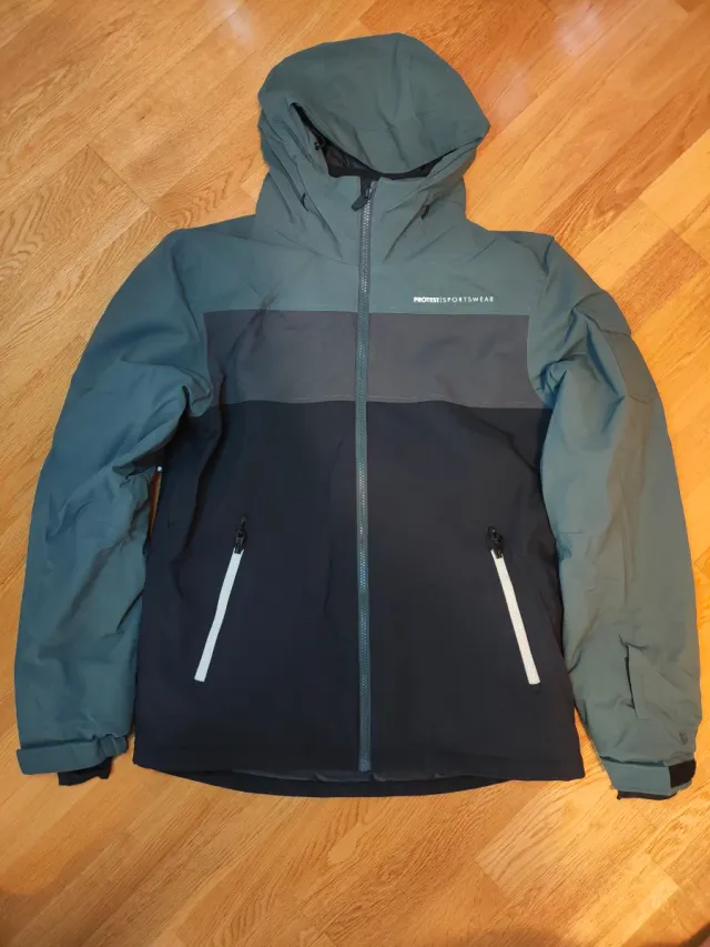 Detalhes do produtoCasaco de neve da marca Protest, tamanho M. Design moderno em blocos de cor.