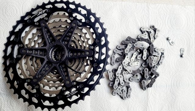 Tem 3000 km e é dada a corrente SLX 7100 com a qual fez os últimos 1500 km para que não haja problemas de acoplamento.