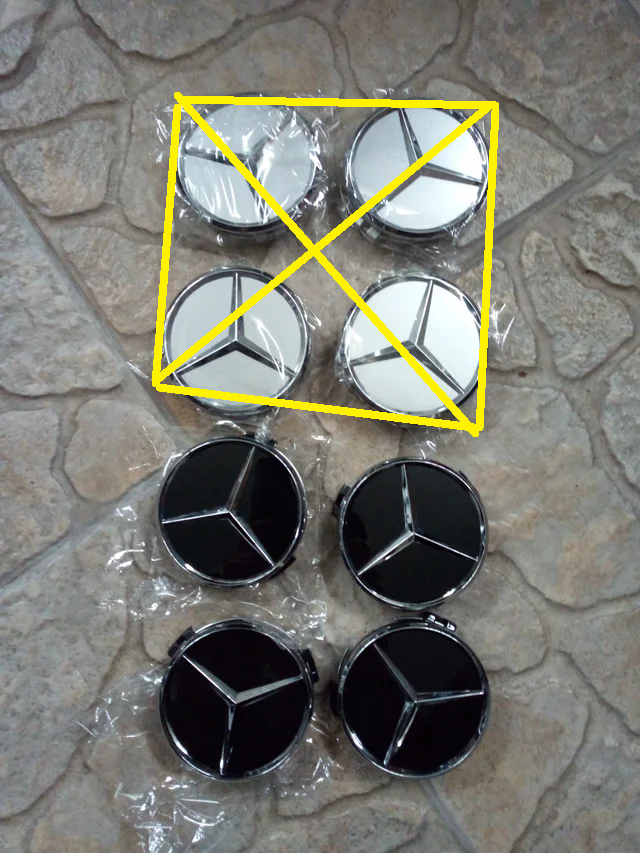 Conjunto de centros de roda para Mercedes-Benz com 75mm de diâmetro. Material Novo - Acabamento preto. (com tampas de encaixe) - Logotipos AMG (75mm)