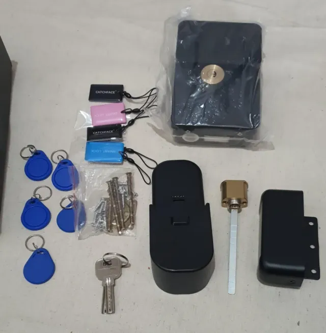 Cerradura inteligente con diseño moderno. - Acabado en color negro. - Incluye llaveros de acceso.