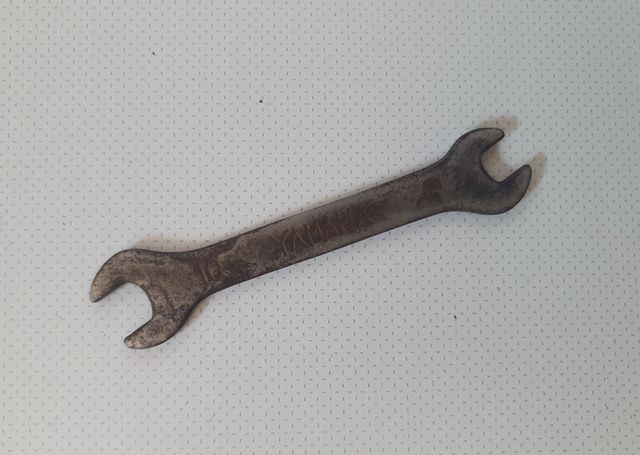 Detalhes do produtoYamaha, Chave de bocas vintage para Moto, nr. 08-10 mm, original, que fazia parte do kit de ferramentas Yamaha.
