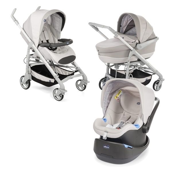 Detalhes do produtoConjunto Trio Love Motion Chicco em cor cinza, versão Sandshell em muito bom estado.