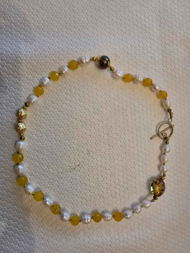 Colar de Pérolas e Pedras Amarelas