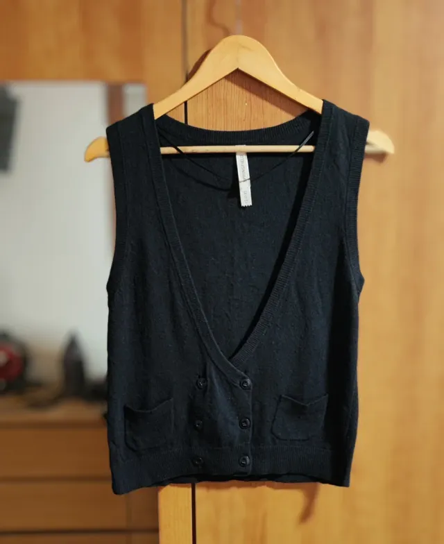 Colete preto de malha com botões