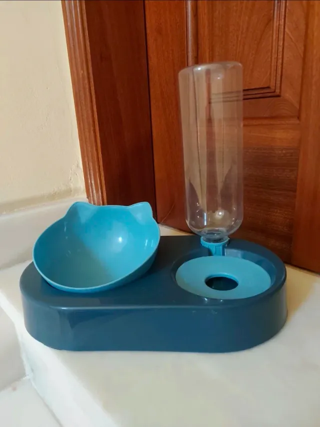 Conjunto de comedouro e bebedouro para gatos em tom azul. Usado poucas vezes , vendo porque o meu gato não se adaptou. Comprei por 20 €