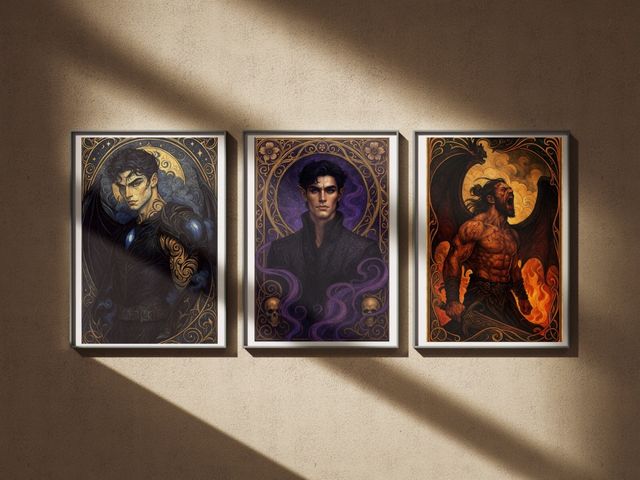 Conjunto de 3 posters inspirados en los Bat Boys de ACOTAR. Ideal para los fans de la saga. - Ilustraciones detalladas de los personajes. - Sem moldura