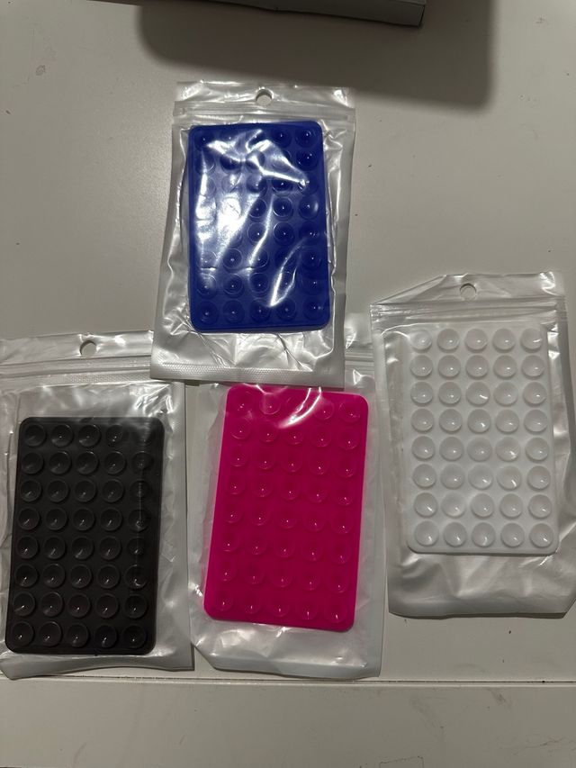Conjunto de 4 ventosas em cores variadas. - Ventosa azul - Ventosa preta - Ventosa rosa - Ventosa branca