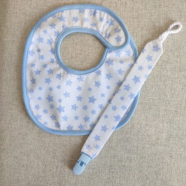 conjunto de babete e fita de chucha em algodão, feitos à mão