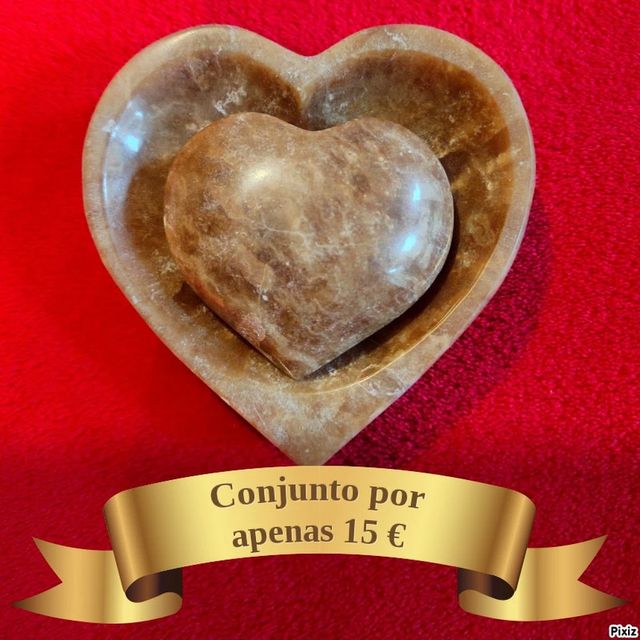 Detalhes do produtoCONJUNTO de Coração & Taça Coraçao de Selenita CHOCOLATE 🤎