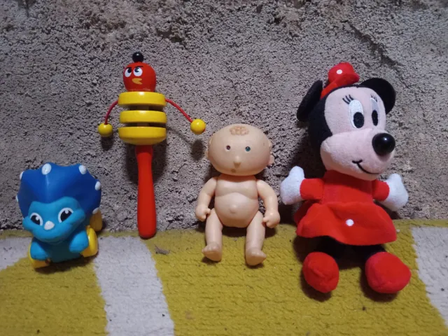 Detalhes do produtoConjunto de quatro brinquedos infantis variados.