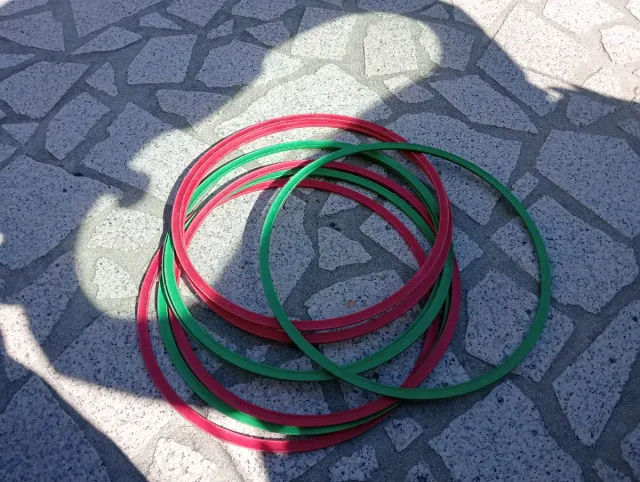 Conjunto de 8 arcos em cores vibrantes, perfeitos para atividades lúdicas e desportivas. - 4 arcos vermelhos - 4 arcos verdes
