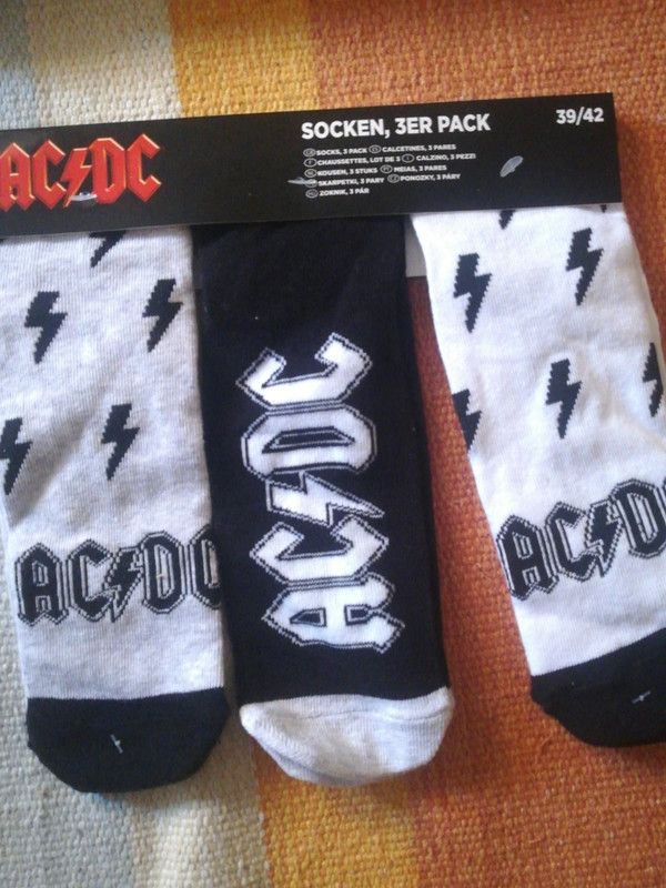 Conjunto de 3 pares de meias unisexo, alusivas à banda ACDC. Tamanho 39-42, produto oficial e novo.