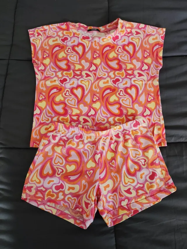 Detalhes do produtoConjunto de t-shirt e calções da Tezenis com um padrão divertido de corações.