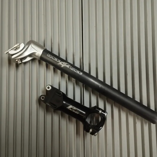 Conjunto de tija e potência para bicicleta. - Tija Race Face 27,2 - Potência Pz Racing.