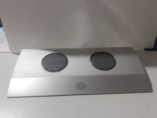Cooler Master para PC, diseñado para mejorar la ventilación de tu equipo. - Diseño elegante en color plateado. - Dos rejillas circulares para ventiladores.