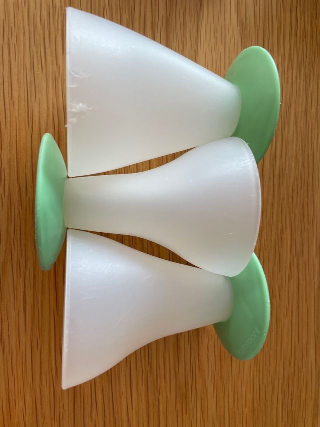 Detalhes do produtoConjunto de copos para introdução alimentar de bebés, ideal para o método BLW. São feitos de material translúcido com bases verdes.