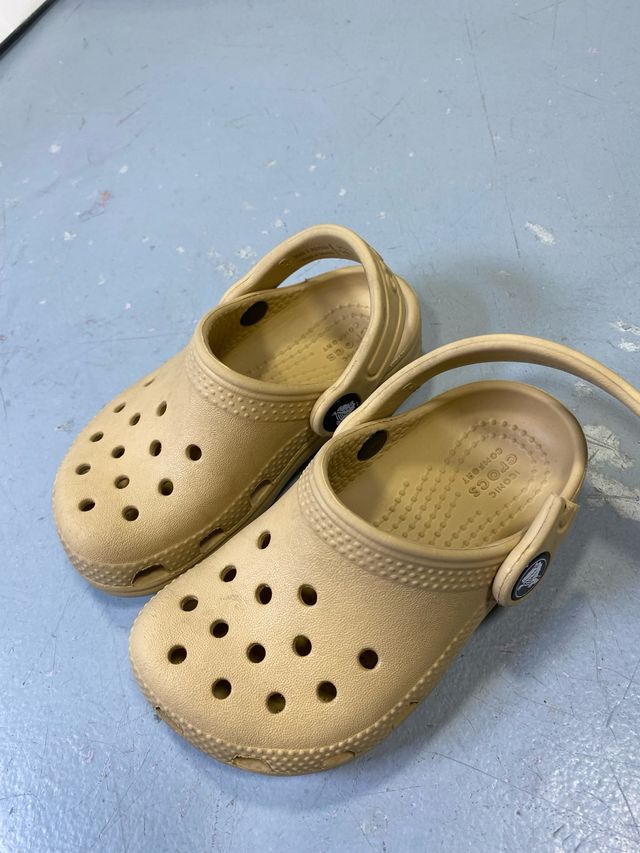 Sabots clássicos da Crocs em bege, perfeitos para crianças. 23-24