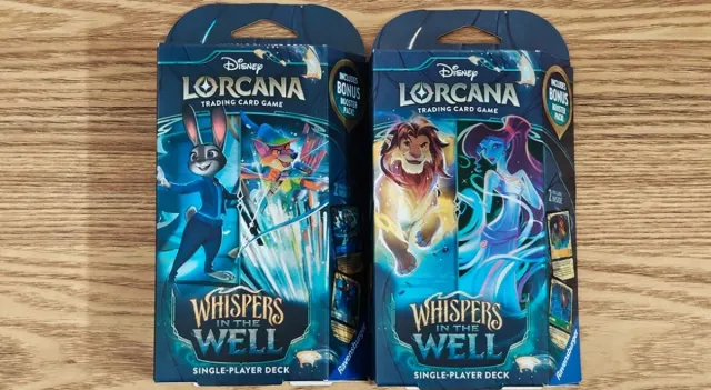 Detalhes do produtoConjunto de dos mazos de un jugador de Disney Lorcana TCG, Whispers in the Well.