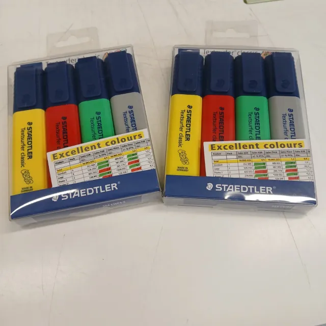 Dois Conjuntos de 4 marcadores Staedtler Textsurfer classic. - Cores excelentes. - Feito na Alemanha.